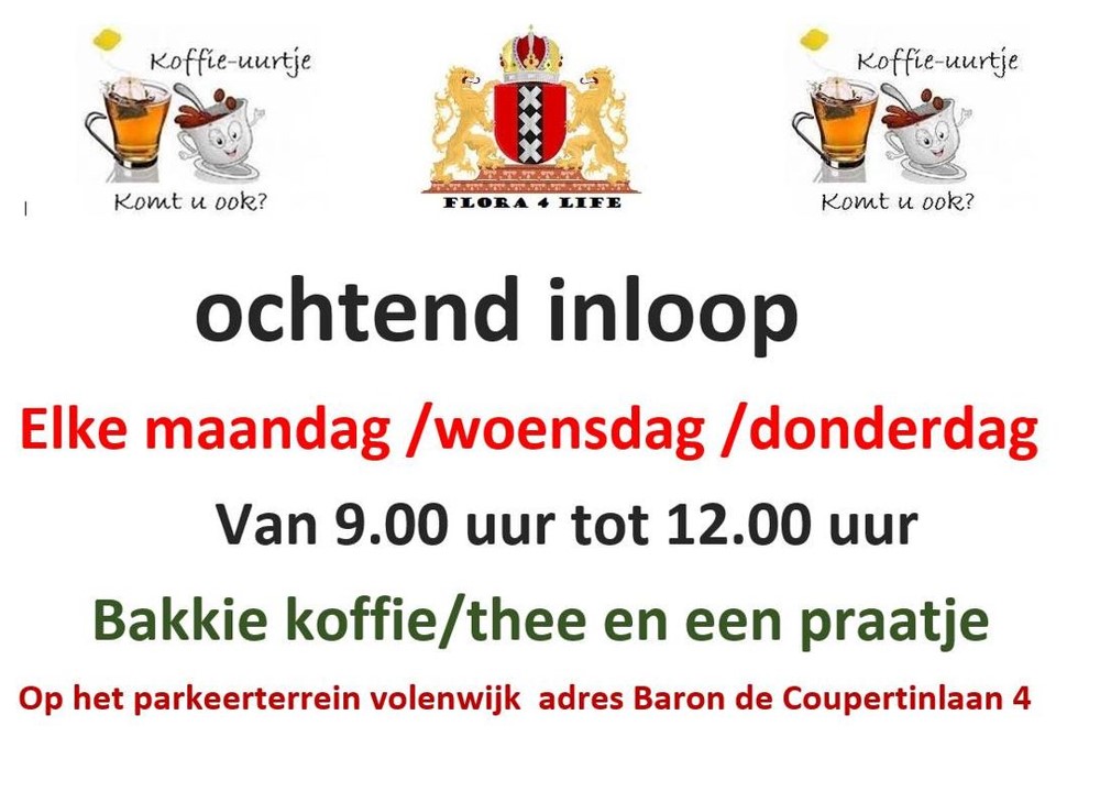 Wij hebben koffieochtend elke ochtend waar een tiental ouderen die onder het genot van een kopje koffie en een koekje mopperen over de kinderen die ze niet zien, de medicatie die niet werkt, 5 keer per nacht naar het toilet moeten en lekker mopperen over het leven maar vooral lekker sociaal kletsen. Daarnaast is ons bestuur heel sociaal en hebben we aandacht voor iedereen die hulp/aandacht nodig heeft.